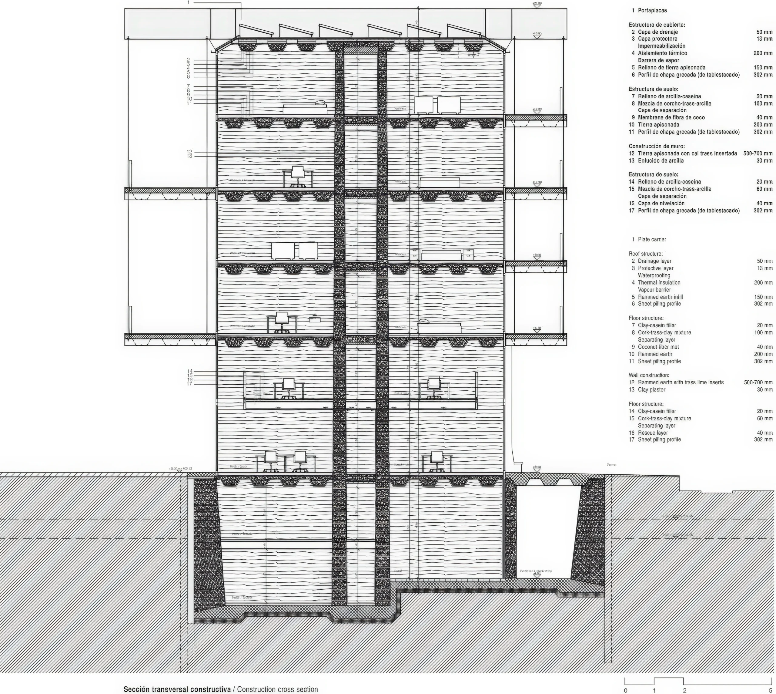 钢屋案例研究 / Steel House Case Study | Roger Boltshauser Roger Boltshauser • 2026-03-15 下午9:32 • 商业与综合建筑, 城市综合体 钢屋案例研究由Roger Boltshauser设计,位于瑞士拉珀斯维尔-约纳火车站广场,是一座五层混合功能建筑。项目采用创新的夯土与钢材混合结构,探索了两种材料在承重、热工性能和可持续性方面的协同效应,为当代城市建筑提供了新的技术范式。 设计: Roger Boltshauser 类型: 城市综合体 功能: 城市综合体 风格: 当代建筑 材料: 混凝土 钢材 夯土 尺度: 微型建筑与装置 地点:拉珀斯维尔-约纳 时间: 2016年 项目概述 钢屋案例研究位于瑞士拉珀斯维尔-约纳火车站广场,是一座五层混合功能建筑,包含商业、办公和住宅空间。该项目由Roger Boltshauser设计,始于2016年,旨在解决火车站广场的城市规划与运营缺陷,通过创新的结构体系重新定义城市节点的建筑表达。 设计理念 设计团队以探索钢材与夯土的极端对立属性为核心概念,充分利用两种材料在质量、抗压抗拉强度、防火性能和可持续性方面的互补特性。这一理念源于2017年在Sitterwerk建造的预应力夯土结构模型试验,通过材料对话创造独特的建筑语言。 空间与功能 建筑采用线性布局,两端设置圆柱形夯土交通塔楼连接城市地面与公共楼层。地下室和首层通过车站地下通道连接,设有商业和办公空间;上部楼层通过楼梯连接办公、商业区域和住宅入口。内部承重墙的空间结构为纵向立面带来节奏感。 材料与技术 建筑结构采用预制夯土承重墙与回收钢梁组合,楼板使用钢板桩型材。为确保水平接缝的剪力传递,夯土墙设置了垂直预应力钢缆。夯土承担压力,钢材承担拉力,钢板桩楼板顶部填充夯土以提升防火性能和建筑物理特性。 项目特色与启发 钢屋案例研究展示了混合材料结构在可持续建筑中的创新应用,为建筑师提供了材料协同设计的新思路。项目在结构体系、热工性能和能源利用方面的集成解决方案,对当代城市更新项目具有重要参考价值。 设计团队 Roger Boltshauser是一位专注于材料研究和结构创新的瑞士建筑师,其工作室以探索传统与现代建筑技术的融合而闻名。在本项目中,团队通过系统的材料实验和结构优化,实现了夯土与钢材的创造性结合。 项目概述 钢屋案例研究位于瑞士拉珀斯维尔-约纳火车站广场,是一座五层混合功能建筑,包含商业、办公和住宅空间。该项目由Roger Boltshauser设计,始于2016年,旨在解决火车站广场的城市规划与运营缺陷,通过创新的结构体系重新定义城市节点的建筑表达。 设计理念 设计团队以探索钢材与夯土的极端对立属性为核心概念,充分利用两种材料在质量、抗压抗拉强度、防火性能和可持续性方面的互补特性。这一理念源于2017年在Sitterwerk建造的预应力夯土结构模型试验,通过材料对话创造独特的建筑语言。 空间与功能 建筑采用线性布局,两端设置圆柱形夯土交通塔楼连接城市地面与公共楼层。地下室和首层通过车站地下通道连接,设有商业和办公空间;上部楼层通过楼梯连接办公、商业区域和住宅入口。内部承重墙的空间结构为纵向立面带来节奏感。 材料与技术 建筑结构采用预制夯土承重墙与回收钢梁组合,楼板使用钢板桩型材。为确保水平接缝的剪力传递,夯土墙设置了垂直预应力钢缆。夯土承担压力,钢材承担拉力,钢板桩楼板顶部填充夯土以提升防火性能和建筑物理特性。 项目特色与启发 钢屋案例研究展示了混合材料结构在可持续建筑中的创新应用,为建筑师提供了材料协同设计的新思路。项目在结构体系、热工性能和能源利用方面的集成解决方案,对当代城市更新项目具有重要参考价值。 设计团队 Roger Boltshauser是一位专注于材料研究和结构创新的瑞士建筑师,其工作室以探索传统与现代建筑技术的融合而闻名。在本项目中,团队通过系统的材料实验和结构优化,实现了夯土与钢材的创造性结合。 本文来自 © Roger Boltshauser, 发布于 © 建筑学院官方网站。 未经授权,禁止转载或摘编。 编辑版本版权归 © 建筑学院官方网站 所有, 设计、图纸及照片版权归设计方 © Roger Boltshauser ↗ 所有。 查看作者在建筑学院发布的更多作品: Roger Boltshauser @ 建筑学院官方网站 Roger Boltshausersteel-house-case-study可持续建筑混合功能建筑瑞士建筑 Roger Boltshauser事务所 & 设计师 下载原图 收藏 0 关于作者 Roger Boltshauser事务所 & 设计师 关注私信 13 文章 0 评论 0 粉丝 Roger Boltshauser是瑞士著名建筑师,以其对可持续建筑的深刻实践和对传统材料(尤其是夯土技术)的现代创新而闻名。他的作品融合了精准的构造逻辑与独特的材料质感,在住宅与文化建筑领域成就卓著,是当代探索建筑生态性与地域性的重要代表。访问官网boltshauser.ch,探索其深邃的建筑理念与作品全貌。 清雅亚苏克苏克区 / Qaysariyah Suq | 安妮·霍尔特罗普|Anne Holtrop 上一篇 2026-03-10 下午12:53 希尔根巴赫瑞斯建筑 / Rise Buildings in Hirzenbach | Roger Boltshauser 下一篇 5天前 猜你喜欢 Vrin社区悼念场所 / Vrin Community Mourning Place | 吉翁·A·卡米纳达|Gion A. Caminada 4天前 公共建筑设计 克里斯蒂艾尔计划乐 civic centre / Cristalleries Planell Civic Centre | HArquitectes 2026-02-12 公共建筑设计 阿伦莫斯二学校展馆 / Pavilion Allenmoos II School Pavilion | Roger Boltshauser 5小时前 公共建筑设计 奥勒里克森体育和游泳中心 / Oerlikon Sports and Sw