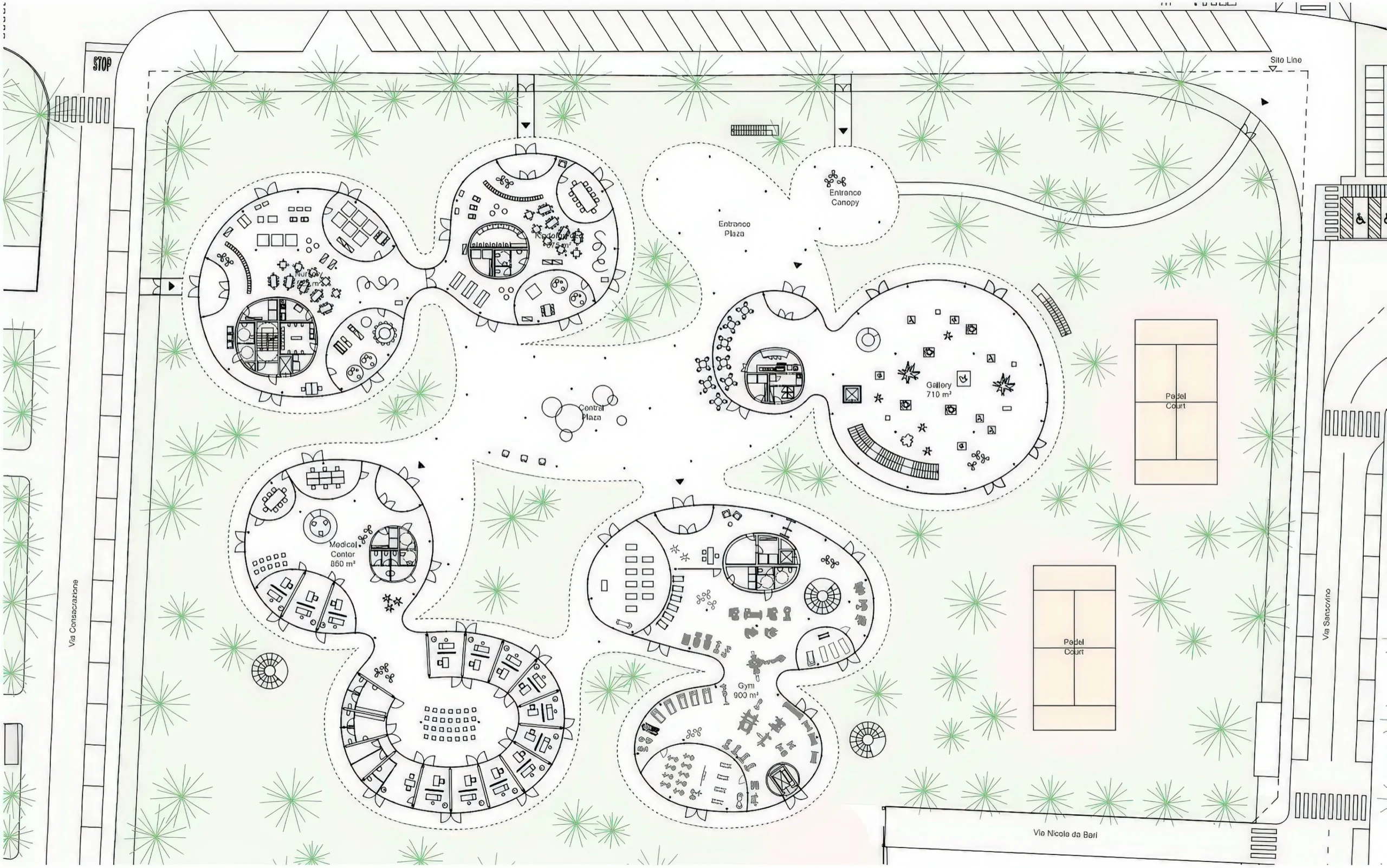 Esselunga 福利院 / Esselunga Welfare Project | SANAA SANAA • 2026-03-21 下午9:26 • 公共建筑设计, 办公建筑设计, 建筑设计 Esselunga 福利院由SANAA建筑事务所设计,位于意大利米兰的公园环境中,是一个专为员工福祉打造的综合福利设施。项目通过水平体量与曲线几何形态,创造室内外融合的空间体验,包含画廊、健身房、医疗中心和托儿所等多种功能。 设计: SANAA 类型: 建筑设计 功能: 社区中心 风格: 当代建筑 材料: 混凝土 钢材 玻璃 尺度: 中型建筑 地点:米兰 时间: 2019年 项目概述 Esselunga 福利院位于意大利米兰,是一个企业福利建筑项目,由SANAA建筑事务所设计。项目总建筑面积约2500平方米,包含地上地下两层,设计始于2019年,旨在为员工提供全面的福利服务设施。 设计理念 Esselunga 福利院的设计理念围绕”福祉环境”展开,SANAA通过建筑与自然的融合,创造支持人际关系和人自然互动的空间。项目选址于公园环境中,通过曲线几何形态模糊内外边界,营造兼具公共性与私密性的空间体验。 空间与功能 Esselunga 福利院的地面层设置了画廊、多功能空间、健身房、医疗中心和托儿所等独立功能区域,这些空间通过大型屋顶连接,形成连续的流动空间。地下室设有2500平方米的档案空间、咨询区和设备用房,中间空间成为互动交流的重要场所。 材料与技术 项目采用支柱支撑的屋顶结构和全玻璃幕墙系统,实现室内外视觉连通。曲线几何形态的设计通过屋顶高度变化(最低处2.1米)强化空间私密性,庭院设计引入自然光线,植被作为功能区域间的缓冲介质。 项目特色与启发 Esselunga 福利院展现了SANAA在当代建筑中对人性化工作环境的创新探索,其空间组织方式为现代企业福利设施设计提供了重要参考,体现了建筑如何通过环境设计提升使用者福祉的设计理念。 设计团队 SANAA是由妹岛和世与西泽立卫创立的国际知名建筑事务所,以其轻盈透明的建筑语言和空间流动性著称。SANAA在Esselunga 福利院项目中延续了其对空间边界和视觉关系的独特处理方式。 项目概述 Esselunga 福利院位于意大利米兰,是一个企业福利建筑项目,由SANAA建筑事务所设计。项目总建筑面积约2500平方米,包含地上地下两层,设计始于2019年,旨在为员工提供全面的福利服务设施。 设计理念 Esselunga 福利院的设计理念围绕”福祉环境”展开,SANAA通过建筑与自然的融合,创造支持人际关系和人自然互动的空间。项目选址于公园环境中,通过曲线几何形态模糊内外边界,营造兼具公共性与私密性的空间体验。 空间与功能 Esselunga 福利院的地面层设置了画廊、多功能空间、健身房、医疗中心和托儿所等独立功能区域,这些空间通过大型屋顶连接,形成连续的流动空间。地下室设有2500平方米的档案空间、咨询区和设备用房,中间空间成为互动交流的重要场所。 材料与技术 项目采用支柱支撑的屋顶结构和全玻璃幕墙系统,实现室内外视觉连通。曲线几何形态的设计通过屋顶高度变化(最低处2.1米)强化空间私密性,庭院设计引入自然光线,植被作为功能区域间的缓冲介质。 项目特色与启发 Esselunga 福利院展现了SANAA在当代建筑中对人性化工作环境的创新探索,其空间组织方式为现代企业福利设施设计提供了重要参考,体现了建筑如何通过环境设计提升使用者福祉的设计理念。 设计团队 SANAA是由妹岛和世与西泽立卫创立的国际知名建筑事务所,以其轻盈透明的建筑语言和空间流动性著称。SANAA在Esselunga 福利院项目中延续了其对空间边界和视觉关系的独特处理方式。 本文来自 © SANAA, 发布于 © 建筑学院官方网站。 未经授权,禁止转载或摘编。 编辑版本版权归 © 建筑学院官方网站 所有, 设计、图纸及照片版权归设计方 © SANAA ↗ 所有。 查看作者在建筑学院发布的更多作品: SANAA @ 建筑学院官方网站 esselunga welfare projectSANAA企业福利建筑当代建筑米兰建筑 SANAA事务所 & 设计师 下载原图 收藏 0 关于作者 SANAA事务所 & 设计师 关注私信 52 文章 0 评论 0 粉丝 格蕾丝农场 / Grace Farms | SANAA 上一篇 2026-03-21 下午9:26 克拉默阿克尔小学 / Krämeracker Primary School | Roger Boltshauser 下一篇 2026-03-22 下午8:02 猜你喜欢 厨房塔 / Kitchen Tower | Xaveer de Geyter 2026-02-25 公共建筑设计 Pavilion and Restaurant in Gyeonggi-Do / 京畿道展馆与餐厅 | Pezo Von Ellrichshausen 6天前 景观小品 Concepción住宅 / House in Concepción | Pezo Von Ellrichshausen 6天前 住宅建筑设计 万科中心水平摩天楼 | Steven Holl 2025-10-30 公共建筑设计 新高速列车 Laview / New Express Train Laview | SANAA 2026-02-22 交通建筑设计 洛杉矶维尔奥斯的房子 / House in Los Vilos | SANAA 2026-02-10 住宅建筑设计 发表回复 请登录后评论...登录后才能评论 提交