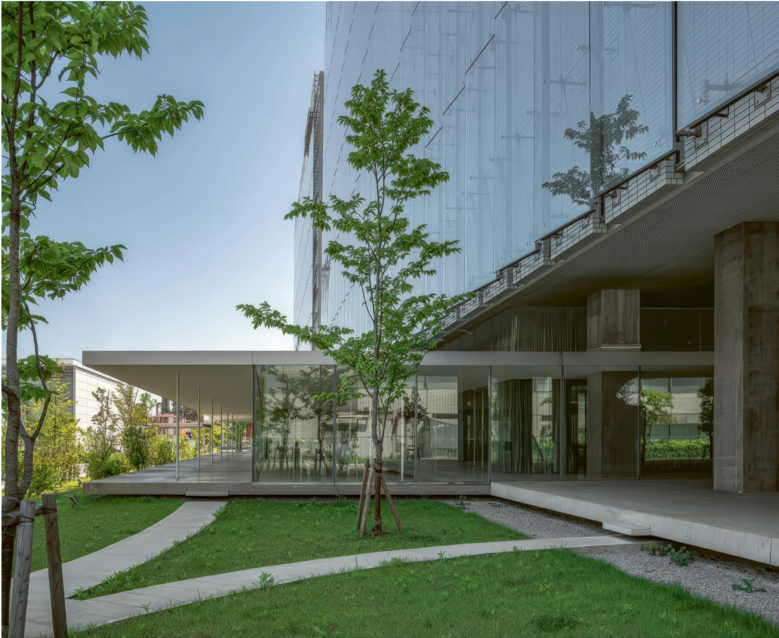 尼康株式会社横浜研究センター / Nichia Corporation Yokohama Research Centre | SANAA SANAA • 2026-02-10 上午11:55 • 公共建筑设计, 办公建筑设计, 建筑设计 尼康株式会社横浜研究センター由SANAA设计,位于日本横滨工业区,通过创新的玻璃幕墙和混凝土板设计,将两栋研究建筑视觉整合,创造出一个连接室内外的入口空间,展现了当代工业建筑的精致美学。 设计: SANAA 类型: 建筑设计 功能: 办公楼 风格: 当代建筑 材料: 混凝土 玻璃 石材 尺度: 中型建筑 地点:横滨 时间: 2018年 项目概述 尼康株式会社横浜研究センター位于日本横滨海滨工业区,是一个企业研发建筑群。项目包含两栋建筑,首栋建于2006年,后期增建新楼,SANAA事务所于2018-2021年间完成了外立面改造、入口大厅重塑及整体景观设计。 设计理念 SANAA以”视觉整合”为核心概念,旨在通过统一的建筑语言将两栋独立建筑融为一体。设计通过大跨度混凝土悬挑板和反射玻璃幕墙,在灰色工业区中创造出一处明亮、轻盈且具有启发性的建筑形象。 空间与功能 项目通过一个低矮的混凝土板连接两栋建筑,板下铺设石灰华地坪,内部部分区域去除楼板形成双层高空间,容纳会议厅和入口大厅。低层高区域设置玻璃围合的会议空间,面向前景花园,创造了灵活多样的交流场所。 材料与技术 主要采用混凝土、玻璃和石灰华。外立面使用印有2.4毫米铬点的玻璃面板,这些面板略微向天空倾斜,反射周围城市景观,创造出不断变化的光影效果。混凝土颜色与石灰华地坪相呼应,体现材料的一致性。 项目特色与启发 尼康株式会社横浜研究センター展示了工业建筑也能具备精致美学和人性化空间。SANAA通过巧妙的光线处理和材料运用,为研发环境注入了艺术品质,为工业区更新提供了创新范例。 设计团队 SANAA是由妹岛和世与西泽立卫创立的国际知名建筑事务所,以极简、透明和轻盈的设计风格著称,擅长通过精细的材料处理和空间组织创造独特的建筑体验。 项目概述 尼康株式会社横浜研究センター位于日本横滨海滨工业区,是一个企业研发建筑群。项目包含两栋建筑,首栋建于2006年,后期增建新楼,SANAA事务所于2018-2021年间完成了外立面改造、入口大厅重塑及整体景观设计。 设计理念 SANAA以”视觉整合”为核心概念,旨在通过统一的建筑语言将两栋独立建筑融为一体。设计通过大跨度混凝土悬挑板和反射玻璃幕墙,在灰色工业区中创造出一处明亮、轻盈且具有启发性的建筑形象。 空间与功能 项目通过一个低矮的混凝土板连接两栋建筑,板下铺设石灰华地坪,内部部分区域去除楼板形成双层高空间,容纳会议厅和入口大厅。低层高区域设置玻璃围合的会议空间,面向前景花园,创造了灵活多样的交流场所。 材料与技术 主要采用混凝土、玻璃和石灰华。外立面使用印有2.4毫米铬点的玻璃面板,这些面板略微向天空倾斜,反射周围城市景观,创造出不断变化的光影效果。混凝土颜色与石灰华地坪相呼应,体现材料的一致性。 项目特色与启发 尼康株式会社横浜研究センター展示了工业建筑也能具备精致美学和人性化空间。SANAA通过巧妙的光线处理和材料运用,为研发环境注入了艺术品质,为工业区更新提供了创新范例。 设计团队 SANAA是由妹岛和世与西泽立卫创立的国际知名建筑事务所,以极简、透明和轻盈的设计风格著称,擅长通过精细的材料处理和空间组织创造独特的建筑体验。 本文来自 © SANAA, 发布于 © 建筑学院官方网站。 未经授权,禁止转载或摘编。 编辑版本版权归 © 建筑学院官方网站 所有, 设计、图纸及照片版权归设计方 © SANAA ↗ 所有。 查看作者在建筑学院发布的更多作品: SANAA @ 建筑学院官方网站 Nichia Corporation Yokohama Research CentreSANAA当代建筑横滨工业建筑研发建筑设计 SANAA事务所 & 设计师 下载原图 收藏 0 关于作者 SANAA事务所 & 设计师 关注私信 52 文章 0 评论 0 粉丝 凯林眼镜新总部大楼 / Kering Eyewear New Headquarters | SANAA 上一篇 2026-02-09 下午1:29 莫利波之家 / Morimoto House | SANAA 下一篇 2026-02-10 上午11:55 猜你喜欢 墨田北斋博物馆 / Sumida Hokusai Museum | SANAA 2026-03-15 公共建筑设计 Casa de Navidad / House in Navidad | Pezo Von Ellrichshausen 2026-02-05 住宅建筑设计 昆山博物馆 / Kunshan Museum | SANAA 2026-02-11 公共建筑设计 欧洲信息与文化图书馆 / BEIC – European Library of Information and Culture | SANAA 2026-03-08 住宅建筑设计 卢塞斯艺术学院 / Sint-Lucas School of Fine Arts | Xaveer de Geyter 2026-02-28 公共建筑设计 上海石库沟住宅 / Shochikucho House | SANAA 2026-02-23 住宅建筑设计 发表回复 请登录后评论...登录后才能评论 提交