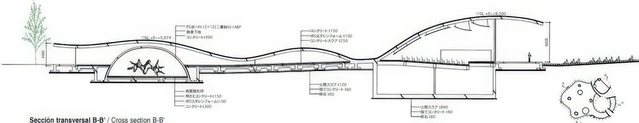 日照大剧院和博物馆 / Rizhao Amphitheatre and Museum | SANAA SANAA • 2026-02-24 下午3:11 • 公共建筑设计, 建筑设计, 文化建筑设计 日照大剧院和博物馆由SANAA建筑事务所设计,位于中国山东省日照市公园中心,是一座集露天剧场与博物馆功能于一体的文化建筑。设计以连续起伏的屋顶形态融入自然环境,创造出山峦与峡谷般的空间体验。 设计: SANAA 类型: 文化建筑设计 功能: 剧院 风格: 当代建筑 材料: 混凝土 钢材 玻璃 尺度: 中型建筑 地点:日照 时间: 1970年 项目概述 日照大剧院和博物馆项目位于中国山东省日照市公园中心,由SANAA建筑事务所设计。该项目包含露天剧场和博物馆两大功能空间,设计通过连续起伏的屋顶形态与场地自然坡度相融合,创造出独特的建筑语言与空间体验。 设计理念 设计灵感来源于自然地形,将建筑视为景观的延伸。屋顶从地面缓缓升起形成山峦形态,再下降成为地面,创造出连续的”山峦与峡谷”空间序列。这种设计不仅回应了场地特征,更强化了建筑与自然环境的有机融合。 空间与功能 建筑空间组织采用连续流动的布局方式,屋顶与地面自然过渡形成顺畅的参观流线。内部设置大型开放式空间,如同峡谷般分隔出不同的功能区域,同时保持视觉上的连贯性。露天剧场与博物馆空间既可独立使用,也可在艺术节期间同步举办活动。 材料与技术 建筑采用简洁现代的材料语言,通过精确的结构计算实现大跨度连续曲面屋顶。设计注重建筑与环境的和谐共生,运用自然采光与通风策略,减少能源消耗,体现可持续设计理念。 项目特色与启发 日照大剧院和博物馆项目展示了SANAA建筑事务所在处理建筑与景观关系上的独特见解,为文化建筑如何融入自然环境提供了创新范例。其连续流动的空间形态对当代建筑设计具有重要的参考价值。 设计团队 SANAA建筑事务所由妹岛和世与西泽立卫共同创立,以轻盈、透明、流动的建筑语言著称。事务所在文化建筑领域有着丰富的实践经验,擅长通过简洁的形式创造丰富的空间体验。 项目概述 日照大剧院和博物馆项目位于中国山东省日照市公园中心,由SANAA建筑事务所设计。该项目包含露天剧场和博物馆两大功能空间,设计通过连续起伏的屋顶形态与场地自然坡度相融合,创造出独特的建筑语言与空间体验。 设计理念 设计灵感来源于自然地形,将建筑视为景观的延伸。屋顶从地面缓缓升起形成山峦形态,再下降成为地面,创造出连续的”山峦与峡谷”空间序列。这种设计不仅回应了场地特征,更强化了建筑与自然环境的有机融合。 空间与功能 建筑空间组织采用连续流动的布局方式,屋顶与地面自然过渡形成顺畅的参观流线。内部设置大型开放式空间,如同峡谷般分隔出不同的功能区域,同时保持视觉上的连贯性。露天剧场与博物馆空间既可独立使用,也可在艺术节期间同步举办活动。 材料与技术 建筑采用简洁现代的材料语言,通过精确的结构计算实现大跨度连续曲面屋顶。设计注重建筑与环境的和谐共生,运用自然采光与通风策略,减少能源消耗,体现可持续设计理念。 项目特色与启发 日照大剧院和博物馆项目展示了SANAA建筑事务所在处理建筑与景观关系上的独特见解,为文化建筑如何融入自然环境提供了创新范例。其连续流动的空间形态对当代建筑设计具有重要的参考价值。 设计团队 SANAA建筑事务所由妹岛和世与西泽立卫共同创立,以轻盈、透明、流动的建筑语言著称。事务所在文化建筑领域有着丰富的实践经验,擅长通过简洁的形式创造丰富的空间体验。 本文来自 © SANAA, 发布于 © 建筑学院官方网站。 未经授权,禁止转载或摘编。 编辑版本版权归 © 建筑学院官方网站 所有, 设计、图纸及照片版权归设计方 © SANAA ↗ 所有。 查看作者在建筑学院发布的更多作品: SANAA @ 建筑学院官方网站 rizhao amphitheatre and museumSANAA建筑事务所当代建筑文化建筑设计日照文化建筑 SANAA事务所 & 设计师 下载原图 收藏 0 关于作者 SANAA事务所 & 设计师 关注私信 52 文章 0 评论 0 粉丝 深圳海事博物馆 / Shenzhen Maritime Museum | SANAA 上一篇 2026-02-24 下午3:11 安特卫普省府大楼 / Province Headquarters, Antwerp | Xaveer de Geyter 下一篇 2026-02-25 下午1:40 猜你喜欢 国际当代雕塑博物馆 MIEC / International Museum of Contemporary Sculpture [MIEC] | 阿尔瓦罗·西扎|Álvaro Siza 2026-03-09 公共建筑设计 尼康株式会社横浜研究センター / Nichia Corporation Yokohama Research Centre | SANAA 2026-02-10 公共建筑设计 Pavilion and Restaurant in Gyeonggi-Do / 京畿道展馆与餐厅 | Pezo Von Ellrichshausen 2026-04-05 景观小品 新日铁市厅 / The New Hitachi City Hall | SANAA 2026-02-15 公共建筑设计 安法文化中心 / Cultural Centre in Anafi | Pezo Von Ellrichshausen 2026-04-02 公共建筑设计 科克兰创新中心 / Innovation Centre in Concepción | Pezo Von Ellrichshausen 2026-02-02 公共建筑设计 发表回复 请登录后评论...登录后才能评论 提交